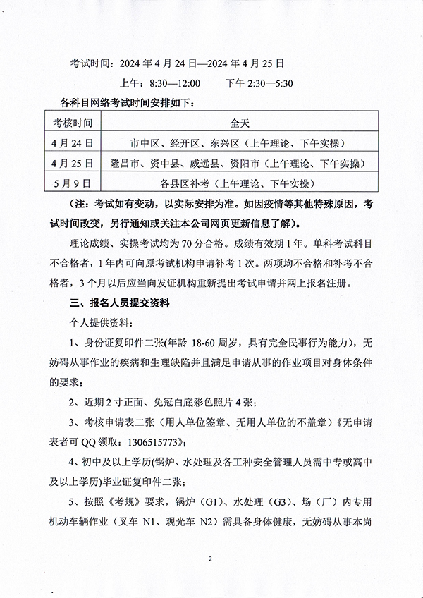 關(guān)于舉辦內江市、資陽(yáng)市(2024)02期特種設備作業(yè)人員考核班的通
