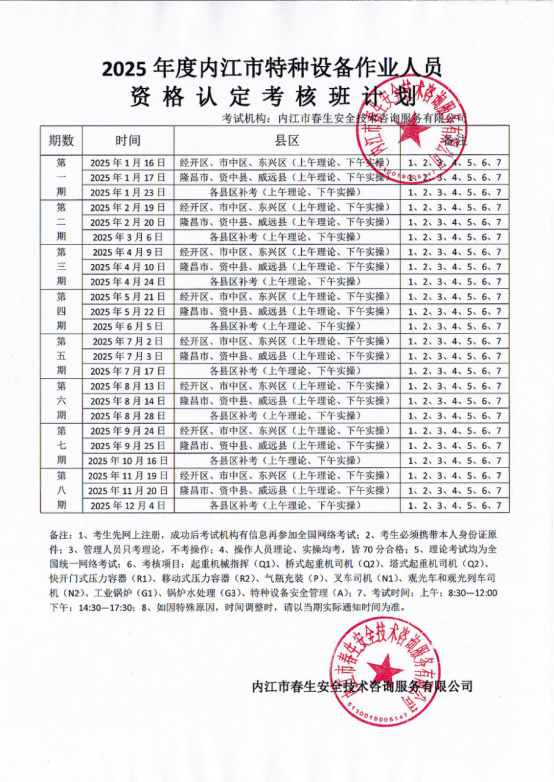 關(guān)于2025年內江市特種設備從業(yè)人員開(kāi)始考試的緊急通知